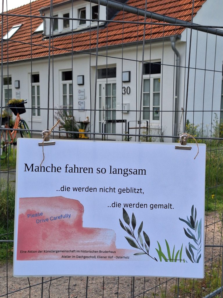Nach dem Nachbarschaftsfest haben wir unsere Nachbarschaft mit dem Entwurf von Schildern für den Ellener Hof unterstützt und ein Projekt von der Bremer Künstlerin Alexa Rasch umgesetzt.