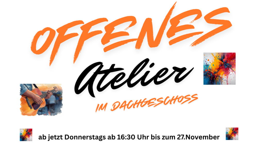 Offenes Atelier – freies selbständiges Malen mit Hildburg Zabel, ab 17 Uhr Gitarre für Anfänger mit Reinhard Hoffmann, offenes Singen am Schluss