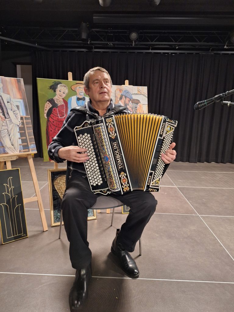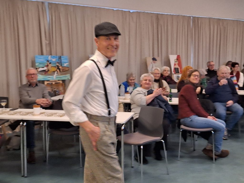 Eine ungewöhnliche Vernissage am 13. März 26 mit besonderem Flair, die Atmosphäre der 1920er Jahre mit Modenschau und Musik wie vor 100 Jahren in der KulturAula des Ellener Hofes. Mit Johannes am Piano, der die Lieder von Faith & Hope begleitete und mit Akkordeonklängen von Alexander und dem sehnsuchtsvollen „Those werde the days“….